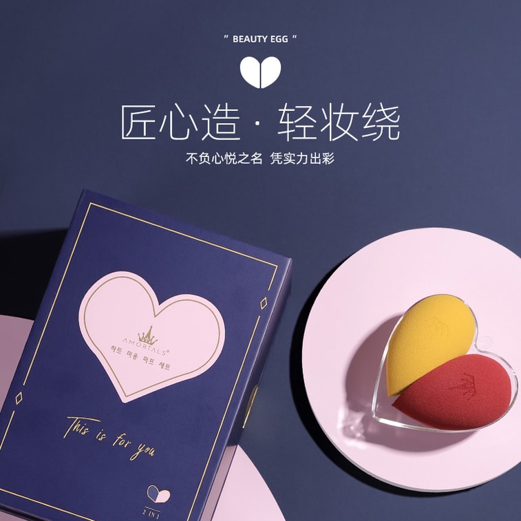 【中国直送】AMORTALS エルムトウ ハート型メイクアップエッグスポンジセット | 両面メイクアップエッグ2個 + ハート型エッグ収納ラック1個 ファンデーションを食べない超ソフトメイクアップスポンジ メイクアップエッグパフ