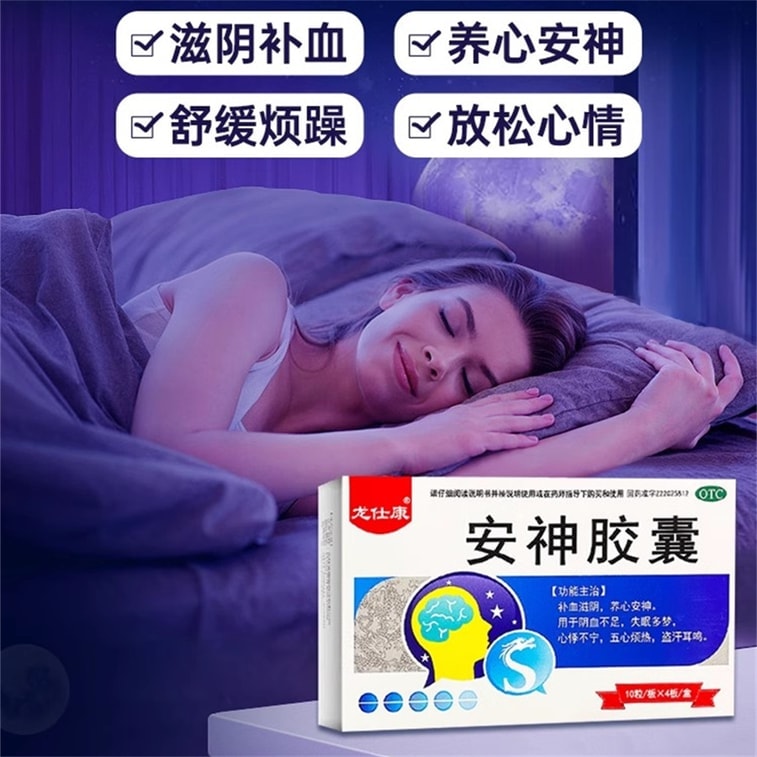 【中国直送】龍世康安神カプセル、睡眠補助剤、速効性睡眠補助剤、滋養強壮錠、不眠症の特効薬(40カプセル/箱)