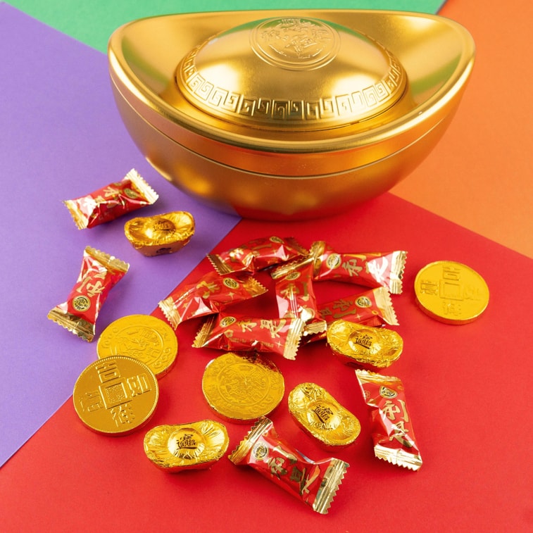 ゴールドインゴットキャンディギフトボックス、チョコレート+ライチ風味ラッキーキャンディ、7.05オンス