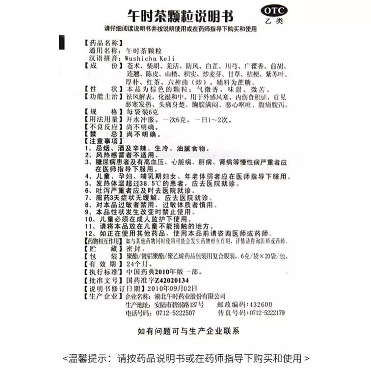 【中国直送】烏龍茶顆粒(かぜ、腹痛、下痢、吐き気、嘔吐に)(6g×20袋)