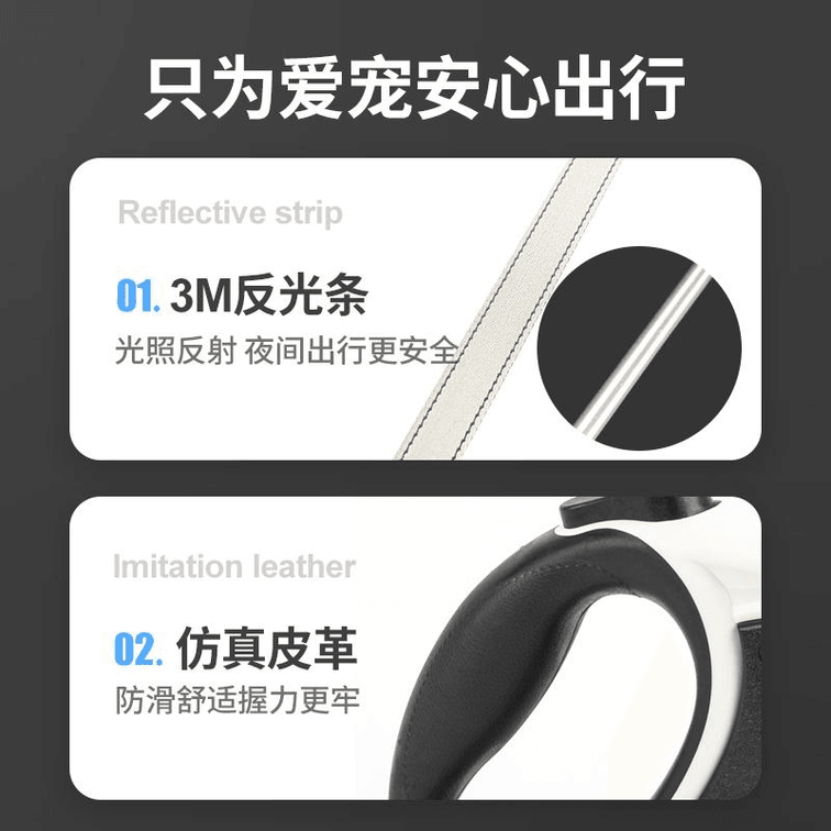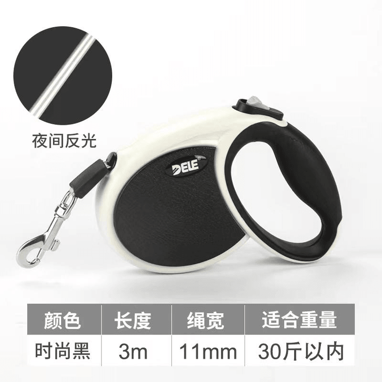 【中国直送】Dele 犬用リード 自動巻き取り式 小型犬用 クラシックライトブラック 3m×1cm×1本