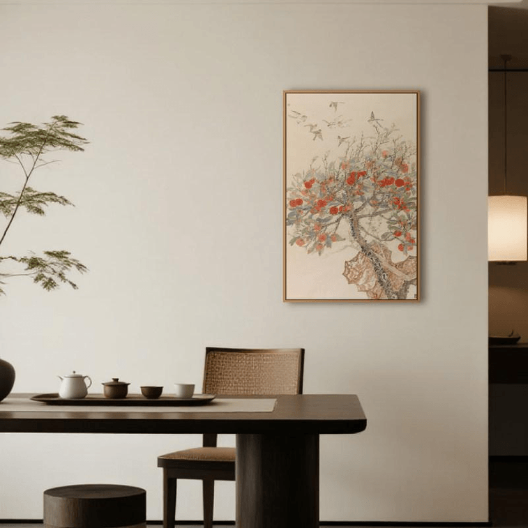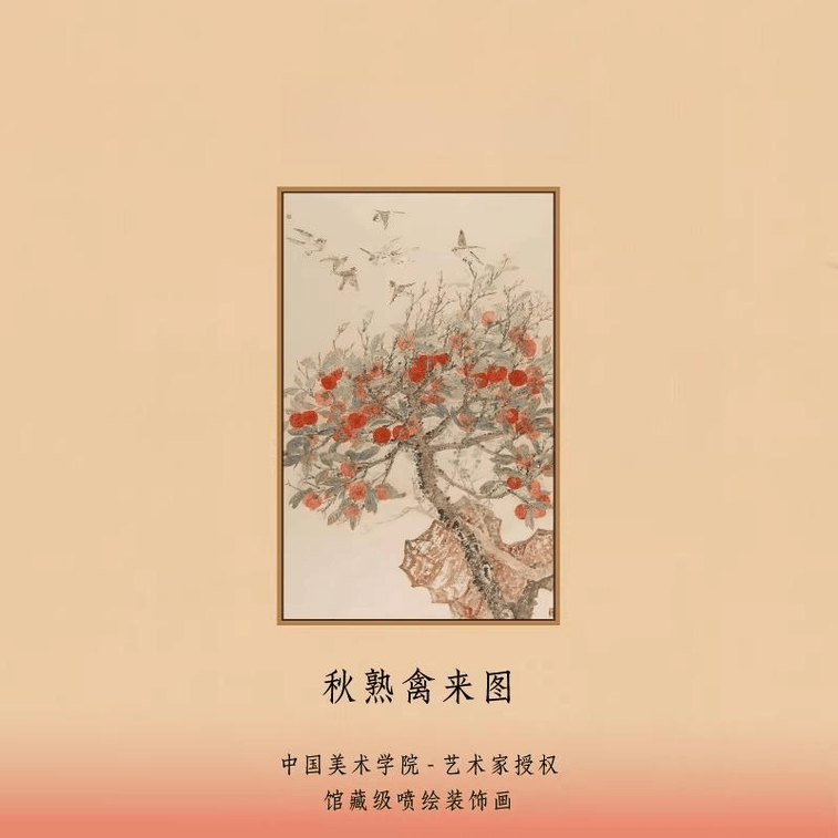 【中国直送】中国美術院の「秋の収穫鳥図」柿を描いた中国風リビング・寝室装飾画(77×50cm)。 | Yami