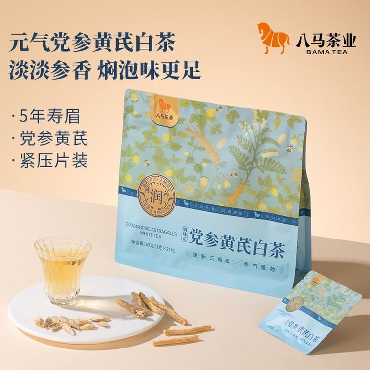 【中国直送】巴馬茶業 党参と黄耆の白茶、白茶、茶葉、健康効​​果、フレーバー白茶、63g [3g*21袋] | Yami