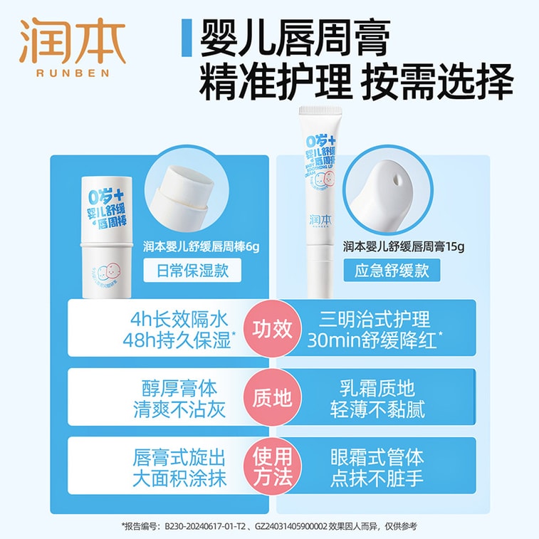 【中国直送】Runben ベビーリップバーム 唾液による刺激を抑え、唇のうるおいケア 6g 1個