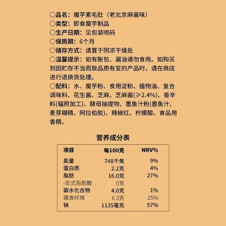 Beijing-flavored sesame sauce konjac imitation beef tripe 18g*10 packs