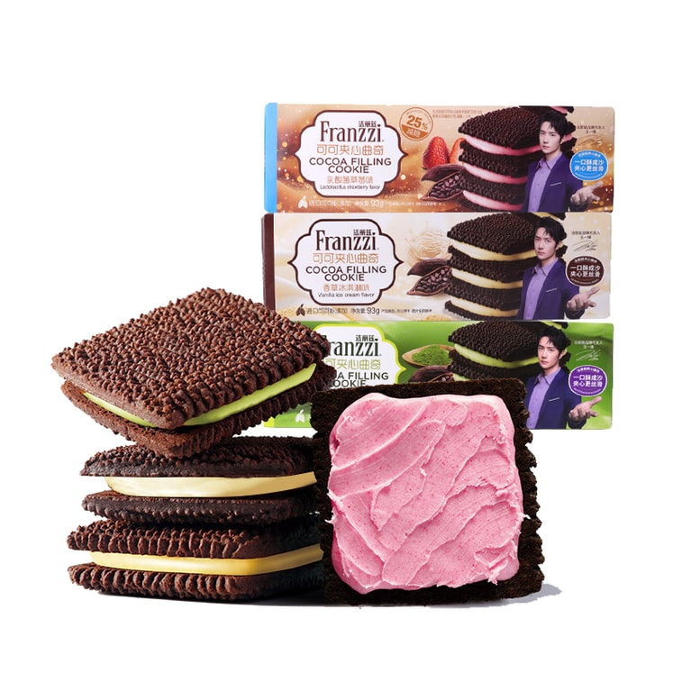 【中国直送】FRANZZI ダークココアサンドクッキー 抹茶ムース 乳酸菌ストロベリー バニラアイスクリーム味 - カジュアルスナック アフタヌーンティーデザート【とろける食感 口溶けなめらかフィリング】93g×3箱 | Yami
