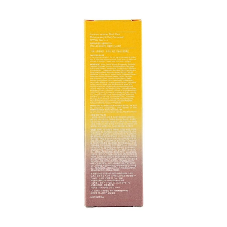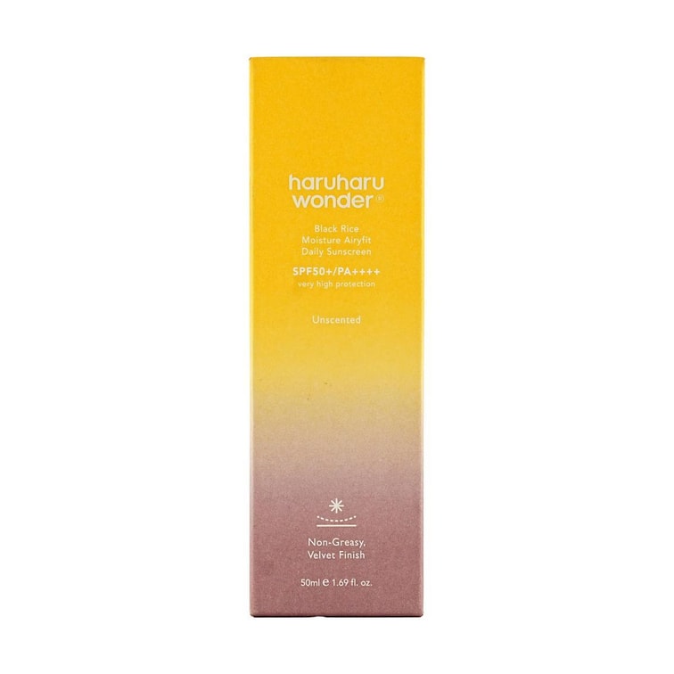 ブラックライス モイスチャー エアリーフィット デイリーサンスクリーン、SPF50+・PA++++、1.69液量オンス - 保湿、軽量 | サンゴに安全 | 無着色