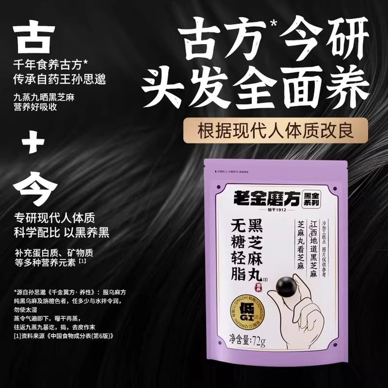 【中国直送】老金莫芳黒胡麻団子 無糖 低GI 低脂肪 72g/袋 胡麻団子 断食スナック 育毛 無糖 ヘルシー 無添加 妊婦用スナック