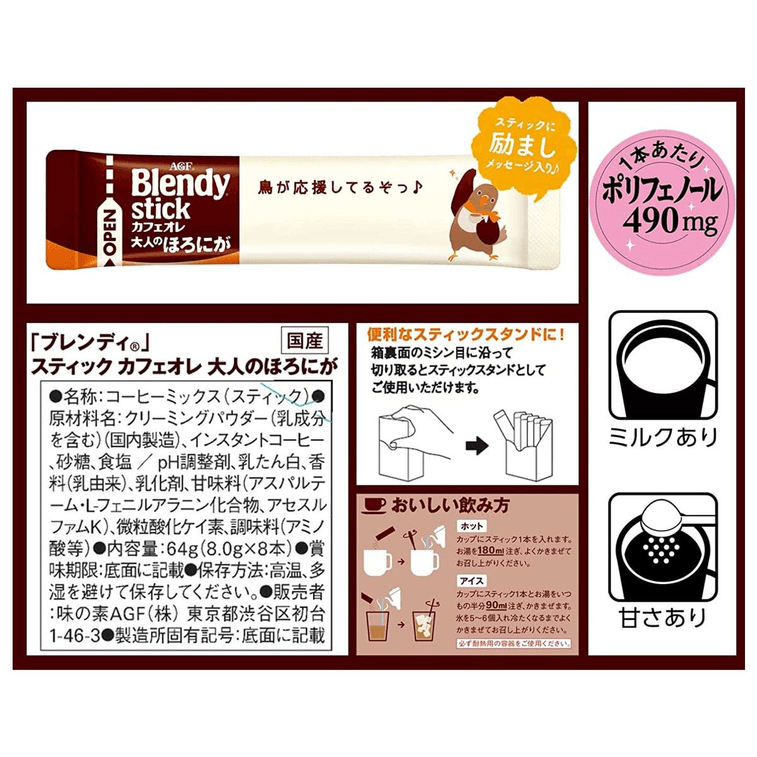【日本直送品】AGF ブレンディスティック 深煎りミルクコーヒー 8本入 | Yami
