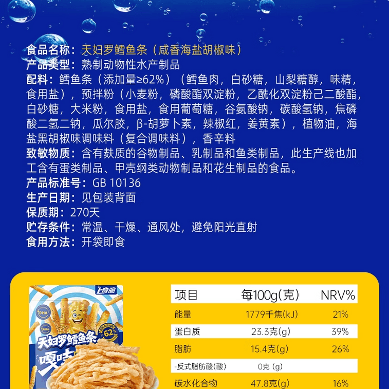 【中国直送】Buqi クリスピータラストリップス 深海タラフロス わさび風味 32g×3袋