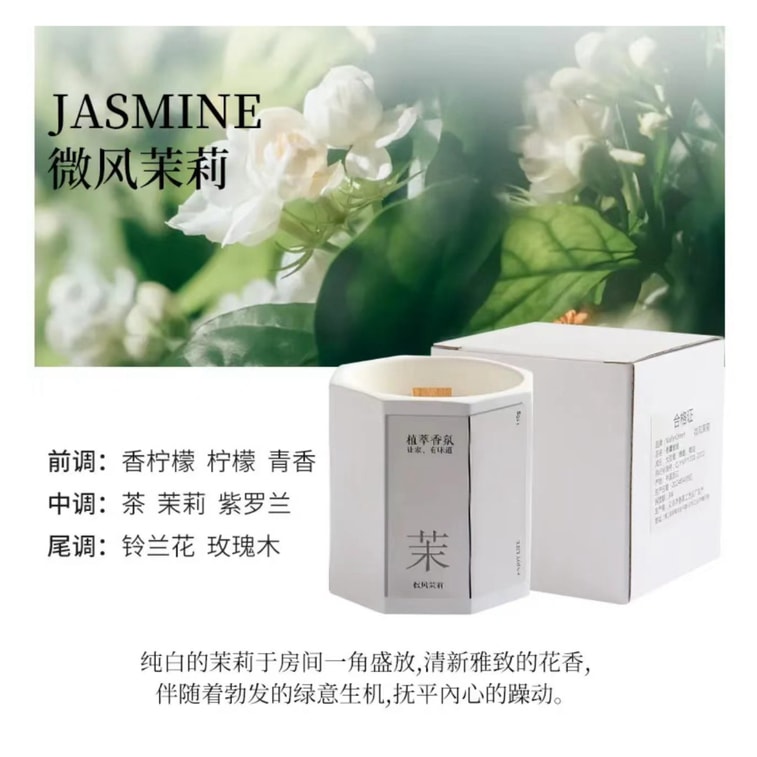 香り豊かなキンモクセイとジャスミンの香り付きキャンドル(八角形) - 130g。寝室やご自宅での使用に最適なこの香り付きキャンドルは、フレッシュなフローラルの香りで安眠とリラックス効果をもたらします。誕生日プレゼントや親しい友人への贈り物に最適です。やけど防止の注意書きが付いた石膏容器入り。香り付きキャンドルのギフトボックス入り。