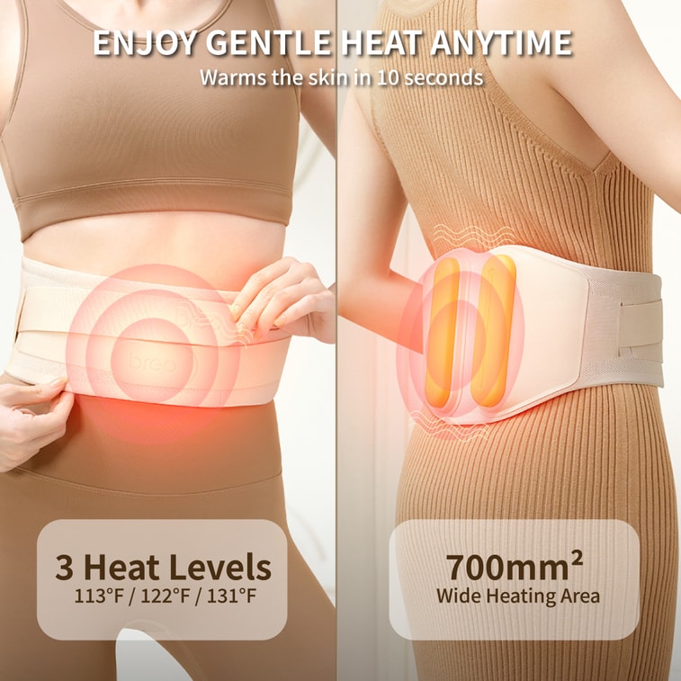Breo Y2 腰マッサージャー ウエストマッサージャー ウエストサポートベルト 背中ヒートコンプレッサー 人気のホリデーギフト ライトベージュ