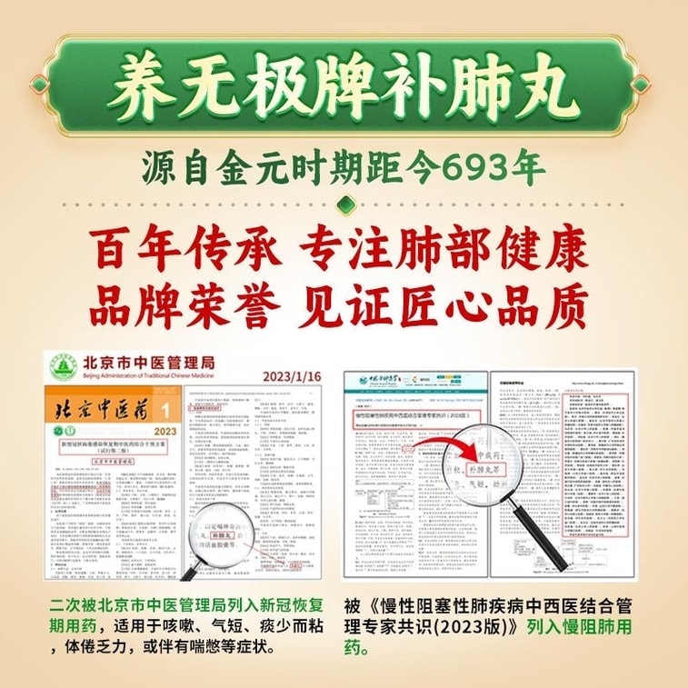 【中国直送】養肺滋養丸:肺を養い、気力を補い、咳や喘息を鎮めます。息切れ、喘鳴、弱い咳、痰の絡む空咳、肺気不足による喉や舌の乾燥などに用いられます。40錠/箱