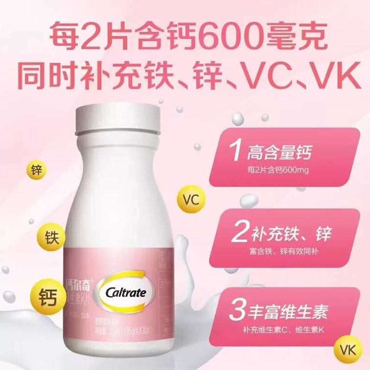 【中国直送】カルトレイト カルシウム、鉄、亜鉛、ビタミンC、ビタミンK配合 成人用カルシウムサプリメント(男性・女性用)(30錠/箱)(推奨注文数:4箱)