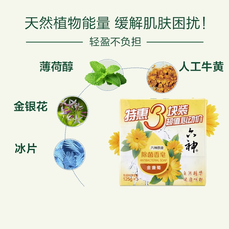 【中国直送】六神カレンデュラ抗菌石鹸 108g 天然植物石鹸 | Yami