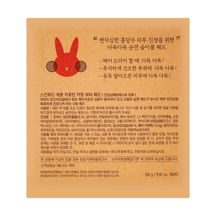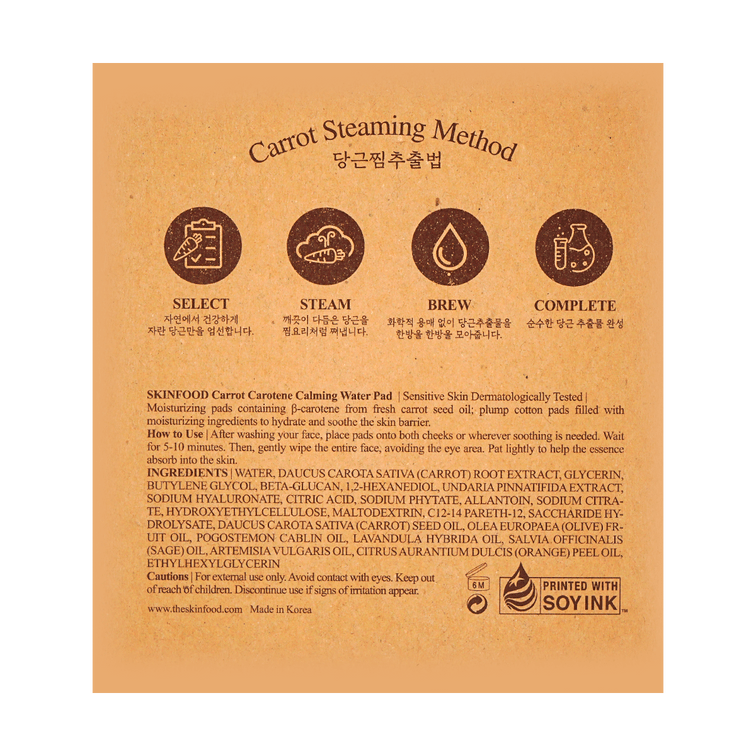カロテン (ニンジン) カーミング ウォーター パッド - 潤いを与えて鎮静させるコットン シート マスク - 敏感肌の修復のための一晩のレスキュー