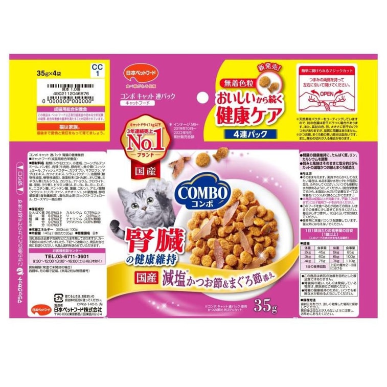 【日本からの直送】減塩で腎臓を守る猫用おやつ、干し魚、キャットビスケット、キャットフード35g×4個セット(日本コンボ4個セット)