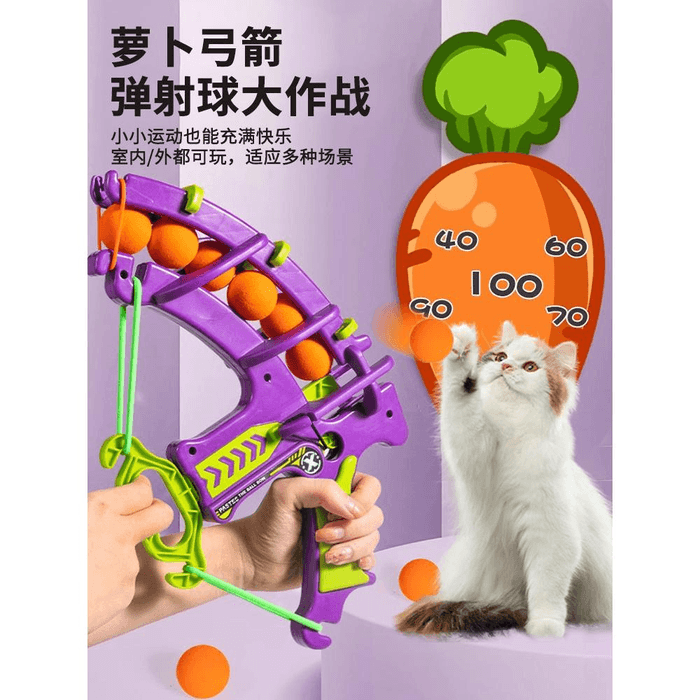 【中国からの直送】キャットバトラー 猫用おもちゃ銃、弾むボール付き猫用自慰おもちゃ銃(弓1本+ボール6個) | Yami