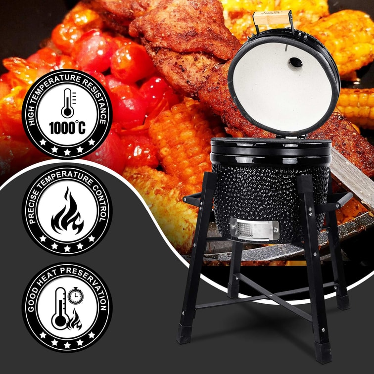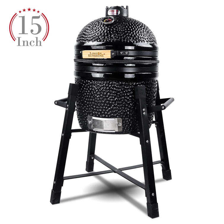 ロンドンサンシャイン 15 インチセラミックバーベキュー屋外バーベキューパティオ卓上チャコールスモーカーブラック * 1