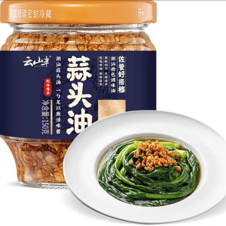 雲山板ニンニク油潮山特製ニンニク春雨ホタテ、エビ、カキ入り黄金油ニンニク麺ソース 150g