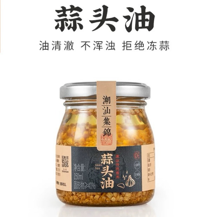 【中国直送】潮汕コレクション:ニンニクオイル、ニンニクチップス、揚げニンニクペースト、本場汕頭特製調味料、ネギ油麺ニンニクオイル150ml×1本