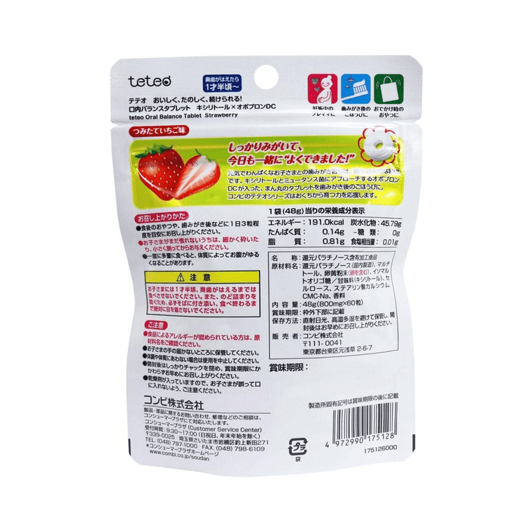 【日本直送】コンビ こども用 フルーティー 歯の保護キャンディ 虫歯予防 キシリトール いちご味 60錠
