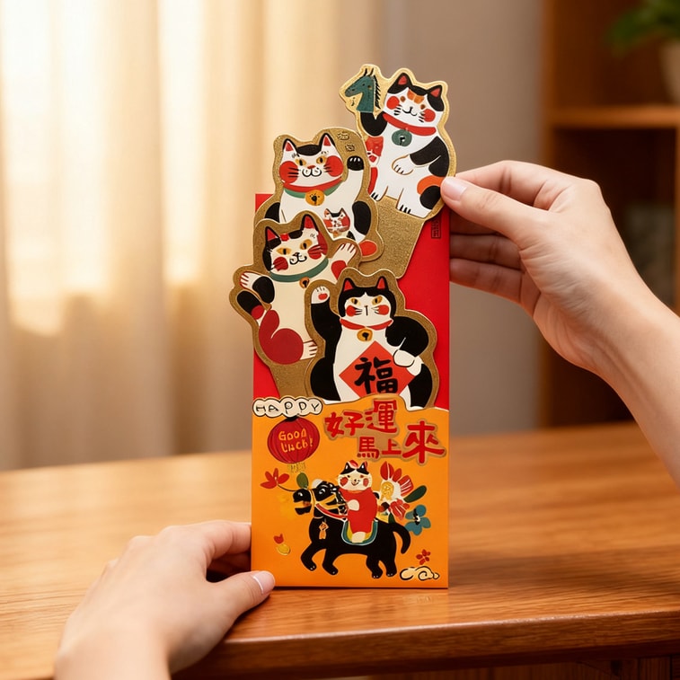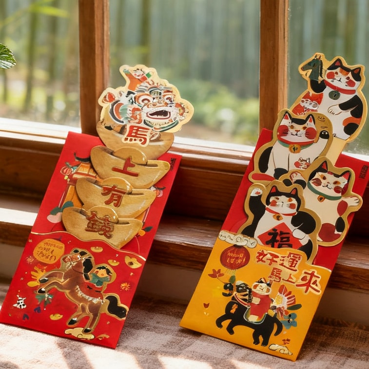 【中国直送】オリジナルライフスタイル 子供用新年赤い封筒 - 幸運がすぐ来る - 引き出し式、3枚パック、2026年午年、かわいい漫画ギフトバッグ、数百元の赤い封筒