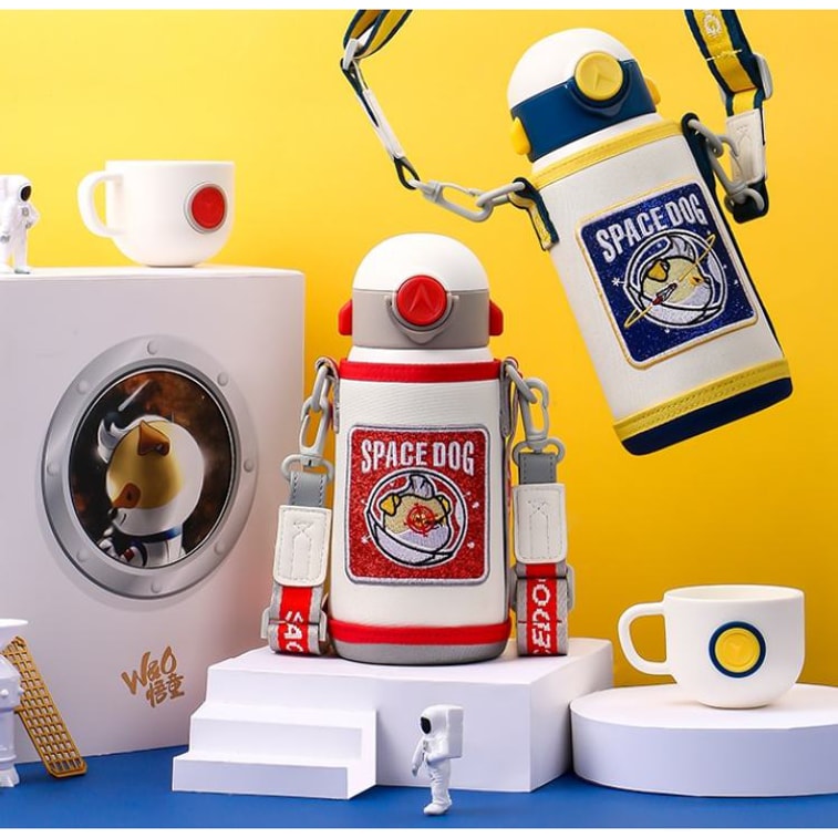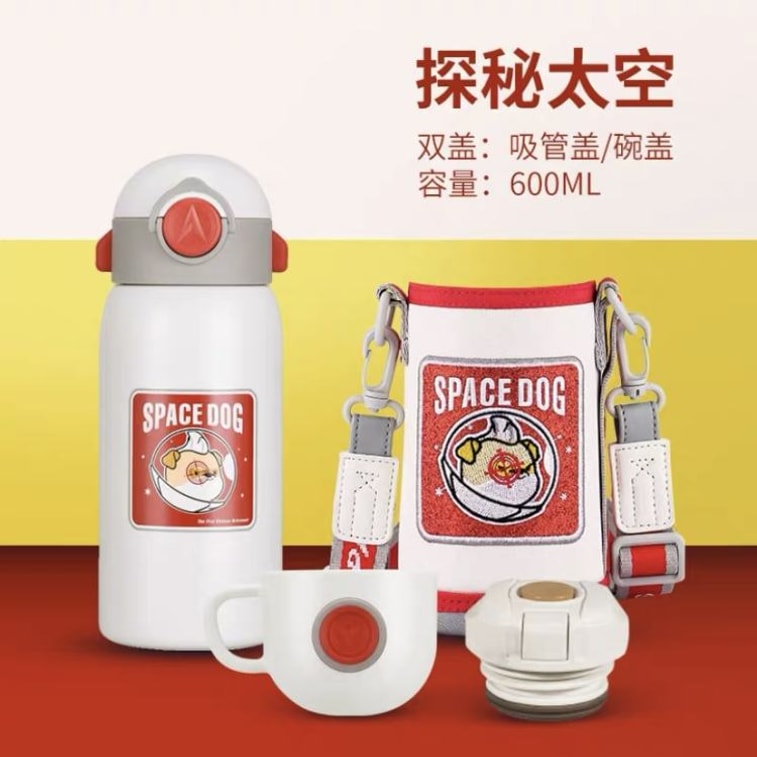 【楽天で一番売れている】FJbottle 真空子供用魔法瓶 ウォーターカップ 600ML 蓋2個 [ストローポップアップ蓋+直飲み兼用蓋]とストロー 316ステンレス鋼 [304よりも優れた] BPAフリー ストラップカップカバーとストローが付属 ペイントレッド宇宙を探索し、12時間保温、24時間保冷します。