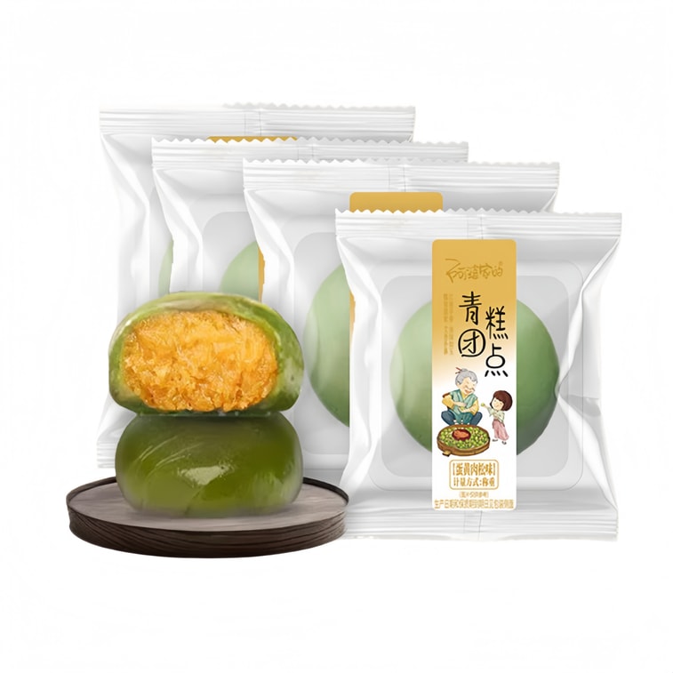 【中国からの直送】おばあちゃんのヨモギ入り緑米団子、塩卵黄と豚肉のふりかけ風味、240g(4個入り)、大容量パック。本格的な清明節団子、柔らかく、もちもちとした甘い伝統的なもち米ケーキ、清明節のおやつ。 | Yami