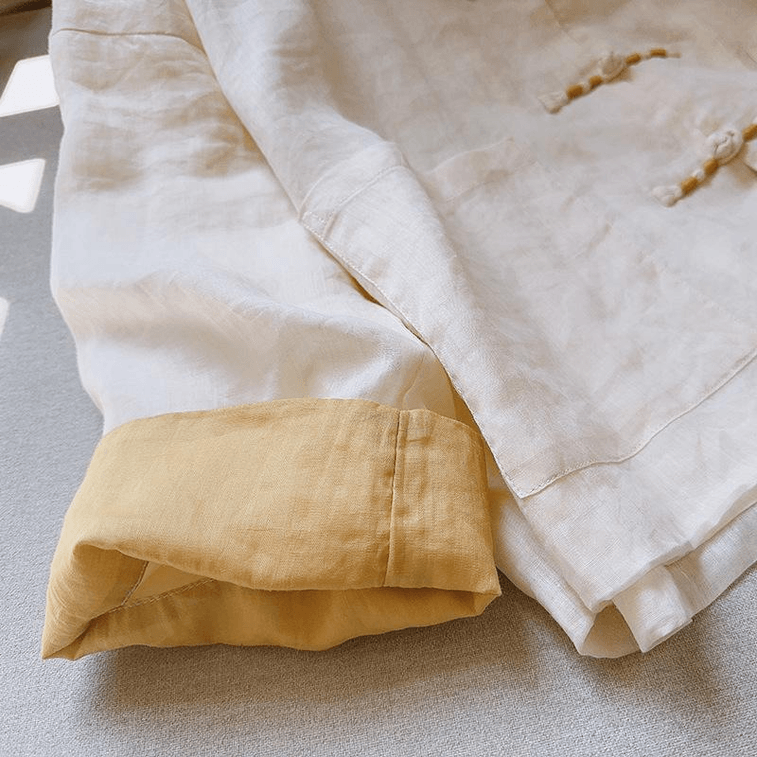 【中国からの直送】ASIS 新作 中国製 綿麻 ボタン付き ゆったりカーディガンジャケット 太極拳スーツ - アプリコット M