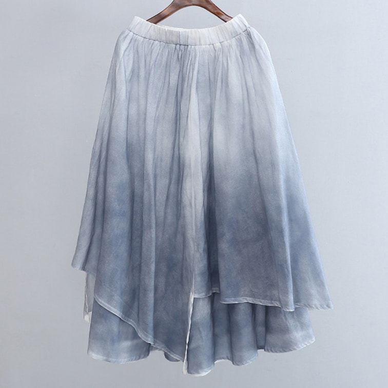 中国 ASIS コットンとリネンの二重層スプレー染色不規則な芸術的なスカート - ブルー フリー サイズ