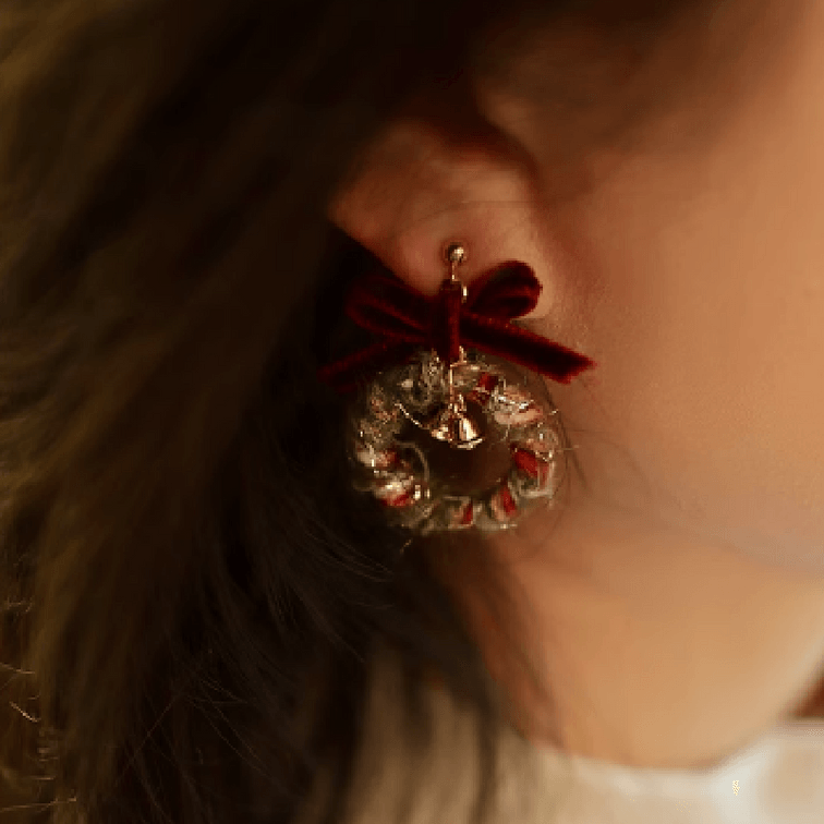 | スタイル | クリスマスの赤いリボンのぬいぐるみイヤリング |