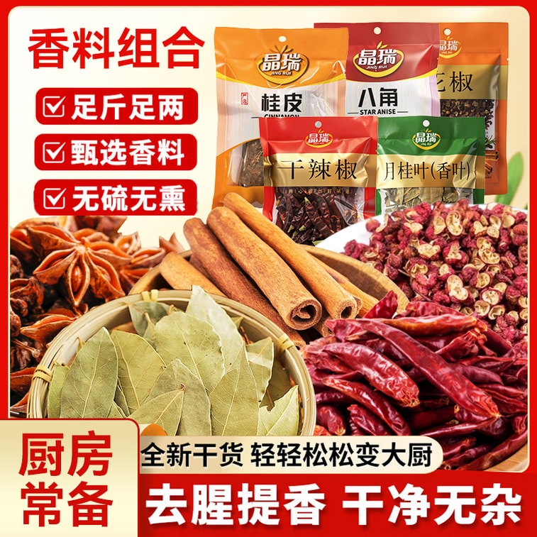 【中国直送】京瑞シナモン、ローリエ、八角、乾燥唐辛子、四川山椒の詰め合わせ 208g 煮込み料理や肉の煮込み料理用スパイス | Yami
