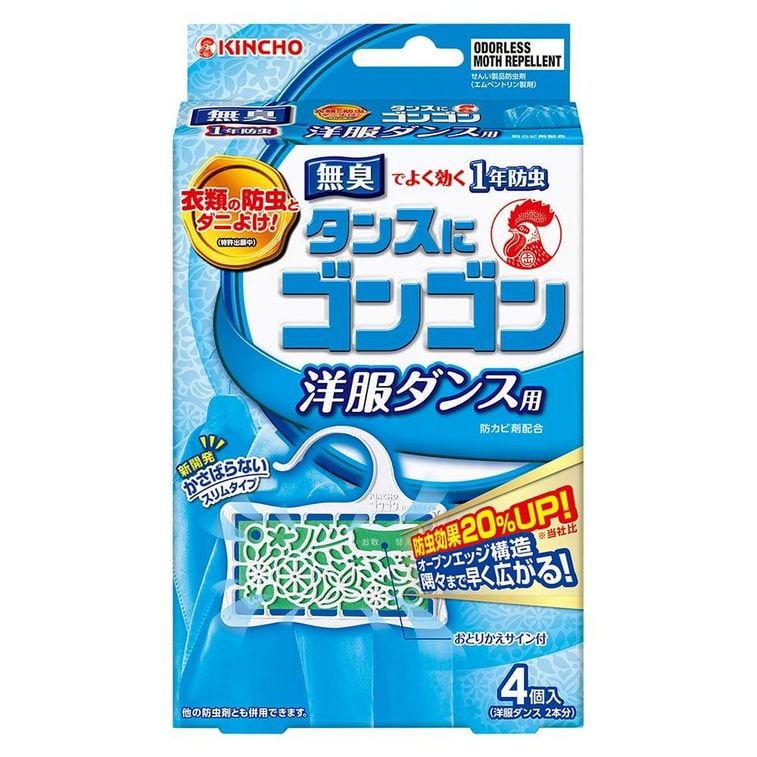 KINCHO 衣類用虫・ダニよけシート(小型ワードローブ吊り下げ用 4枚入り)