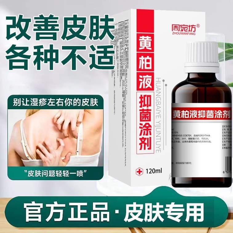 周俊吉(米国)周万芳配合黄耆液外用液。皮膚・軟部組織感染症、消毒、創傷感染、膣潰瘍、皮膚潰瘍、湿疹、ニキビに。120ml×1本/箱