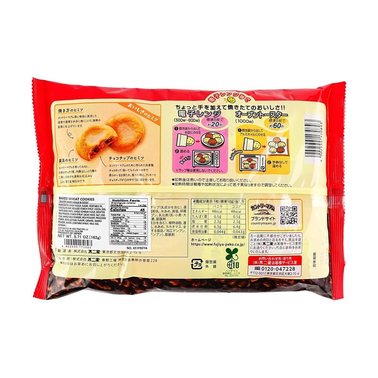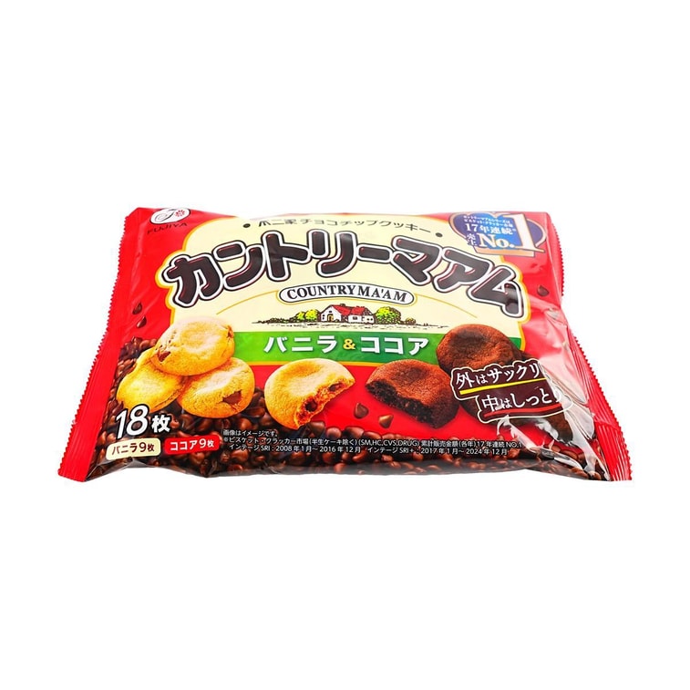 カントリーマアム ベイクドウィートクッキー - チョコレートチップクッキー、バニラ味&チョコレート味、18枚入り、5.71オンス