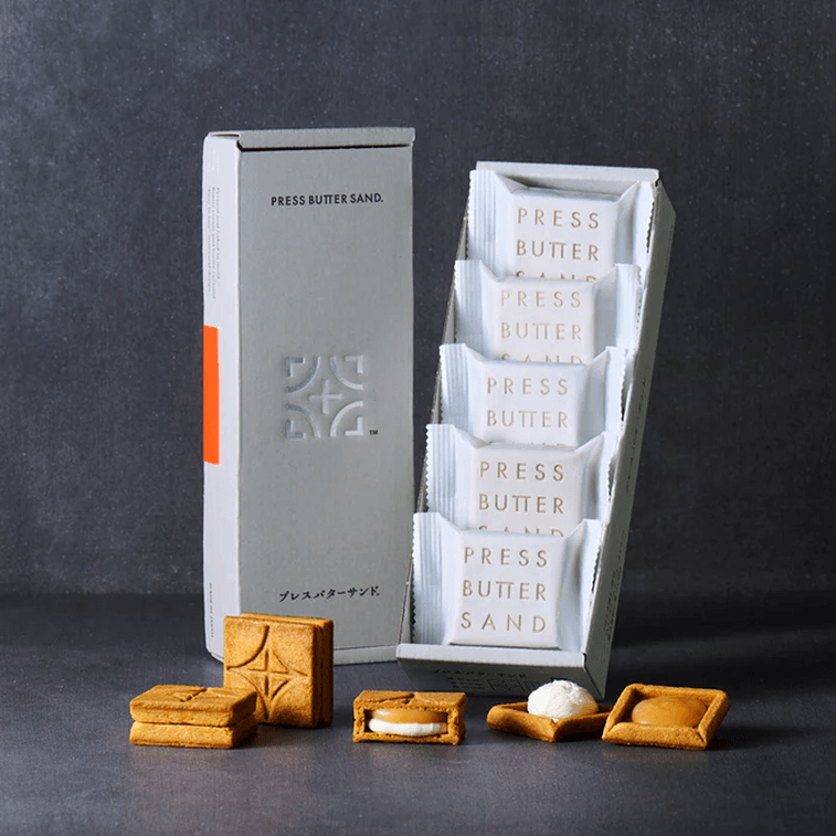 余分な油分だけを丁寧に取り除き、食感と風味のバランスを追求する和菓子の技法「はさみ焼き」で焼き上げたクッキー。シンプルな材料に、バター本来の風味を活かした濃厚なバタークリームを合わせ、サクサクのクッキー生地をバターキャラメルでサンドした、二重の味わいに仕上げました。