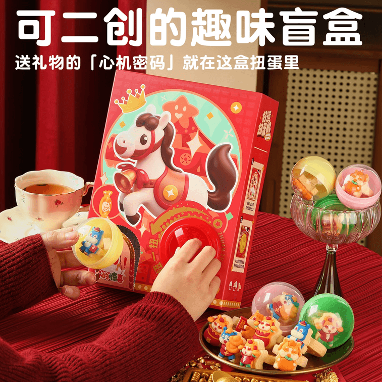 [中国直送] Enjoy Time クリエイティブ 新年ギフト リングクッキー ギフトボックス 新年グッズ 誕生日 ガシャポン おもちゃ 楽しいひねりギフトボックス - 午年 80g*1箱 | Yami