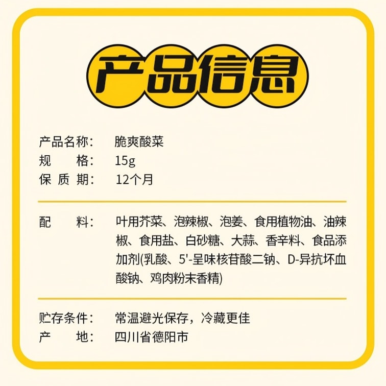 Chuanwazi Crispy Pickled Mustard Greens | Seasoning Pack | 15g × 20 Bags