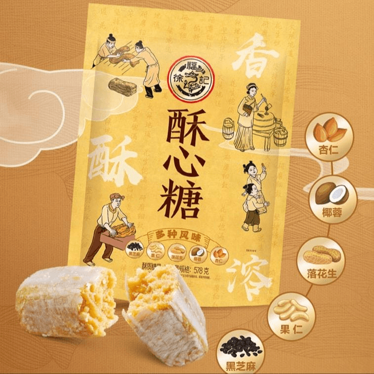 【中国直送】許福奇クリスピーキャンディー オリジナルパック 578g(50個入り)袋 ミックスフレーバー:ナッツ/黒ゴマ/ピーナッツ/ココナッツ/アーモンド ピーナッツブリトル キャンディー カジュアルスナック お正月用品 ウェディングキャンディー