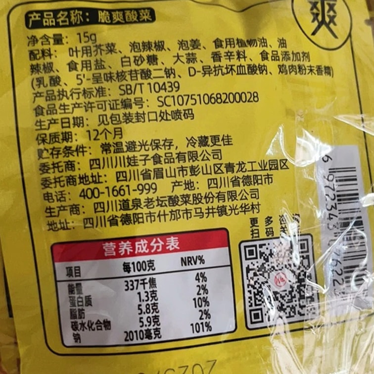 【中国直送】川和子 パリパリ漬キャベツ 15g*10袋入り(合計150g)、そのまま食べられるおかず、食欲をそそる漬物キャベツ、漬物、ソース、キムチ、小袋。