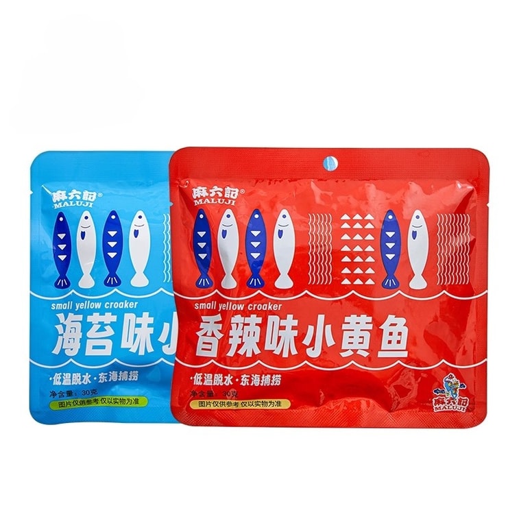 【中国直送】馬六記 クリスピーイエローグチ そのまま食べられるクリスピー干し魚 海藻風味 スパイシーシーフードスナック 30g×6袋【赤3袋、青3袋】