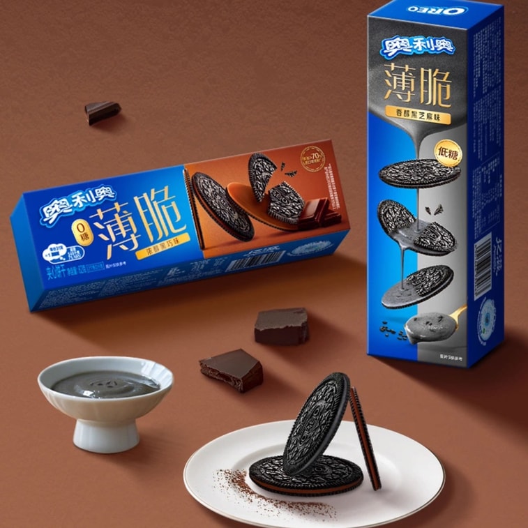 【中国直送】オレオ クリスピークッキー 無糖ダークチョコレート味+低糖黒ゴマ味 62g×2箱