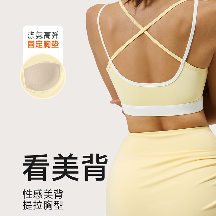 【中国直送】HSPM クロスショルダーヨガスポーツブラ 耐衝撃 プッシュアップベスト サニーイエロー サイズ 2XL