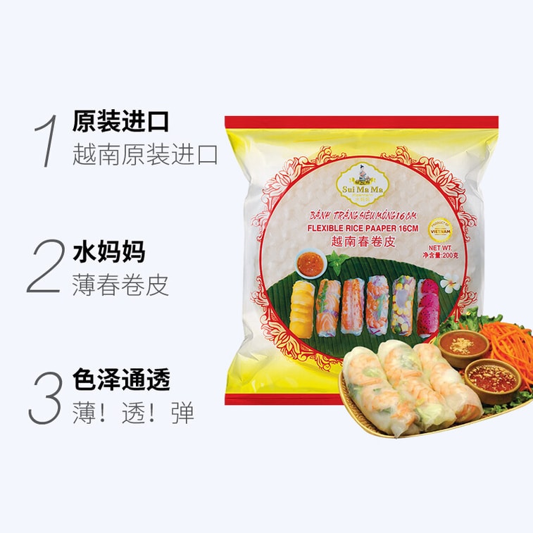 【中国直送】ベトナム産 レイズ 透明クリスタル春巻き皮 低脂肪薄切りライスペーパー春巻き 生食用 ベーキング材料 200g