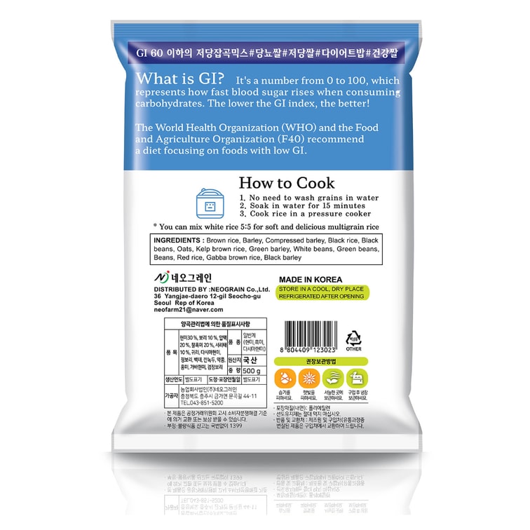 [] DANGCHAN Multigrain Rice 14 Grains Low GI Under 60 Quick Cook Low Calorie Low Sugar 500g Made In