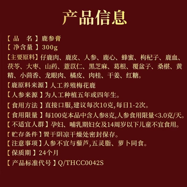 澳東鹿人参ペースト(300g/ボトル) - 気血虚弱の女性のための本物の人参、鹿血、ニホンジカペースト
