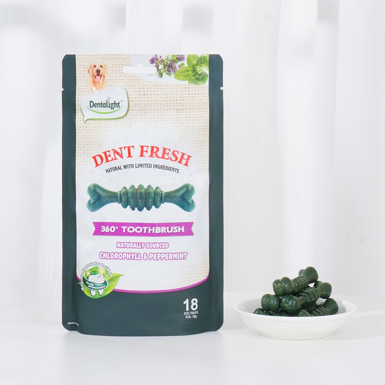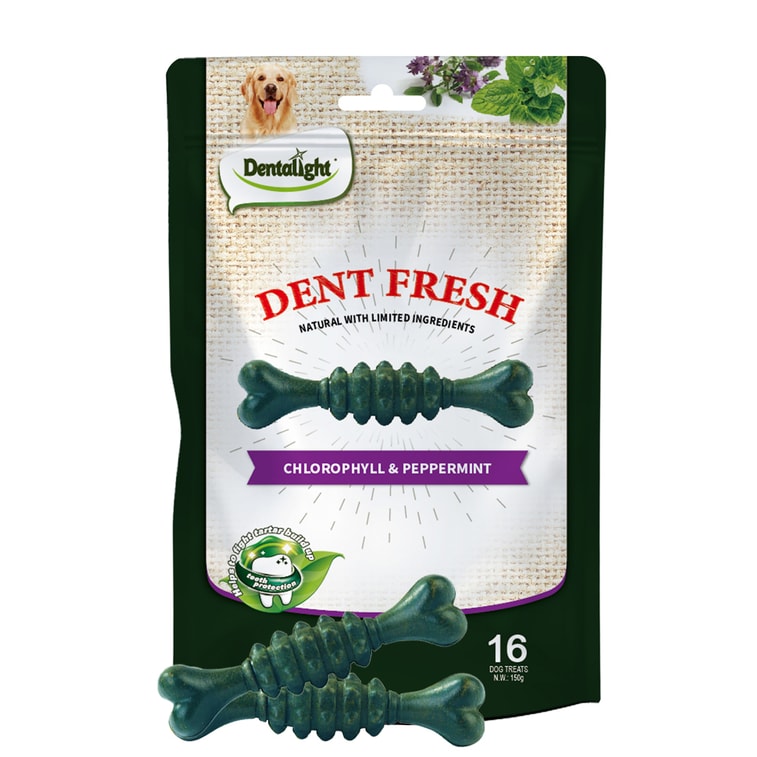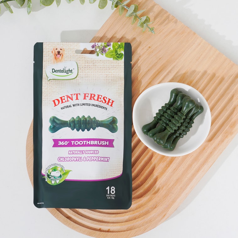 デンタライト - デントフレッシュ 360° 犬用歯磨きスティック(クロロフィル&ミント風味) - 息を爽やかにし、歯垢を除去します(18本入り、150g)