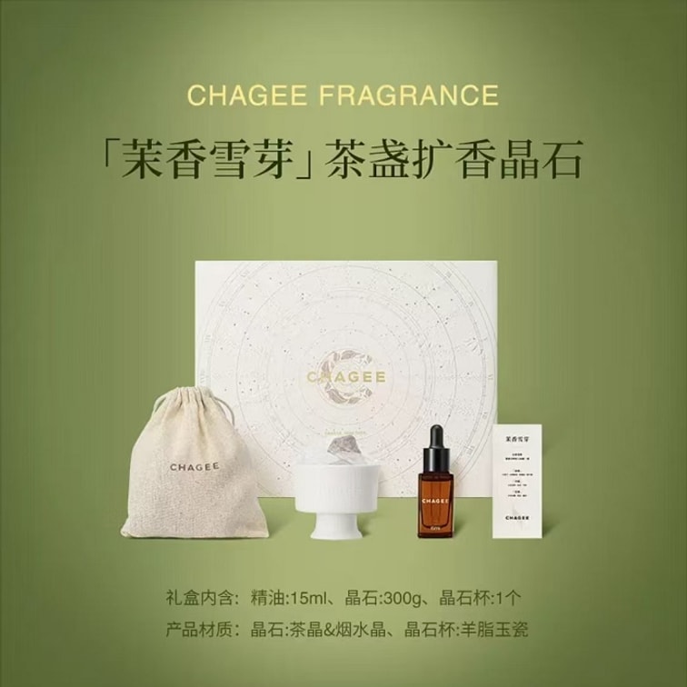 Bawang Chaji ジャスミン スノーバッド ティーカップディフューザー クリスタル ギフトボックス ティーフレグランス グリーンフローラルの香り エッセンシャルオイル15ml、クリスタルカップ300g入り