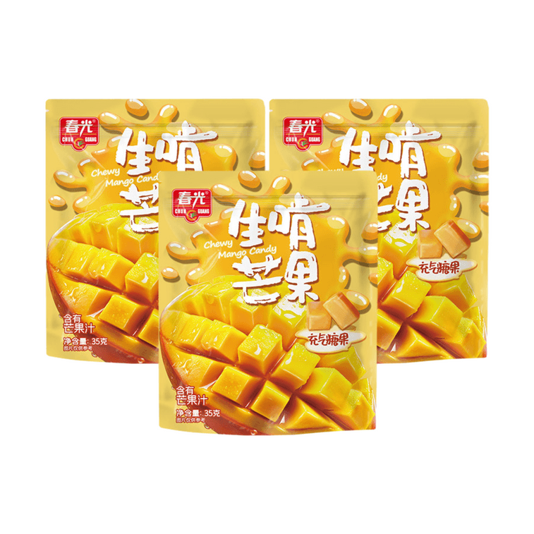 【中国直送】春光海南特産ソフトキャンディ 生マンゴー味 35g*3袋 フルーツ風味ソフトキャンディ 搾りたてジュース エアレーションキャンディ カジュアルスナック 春節商品